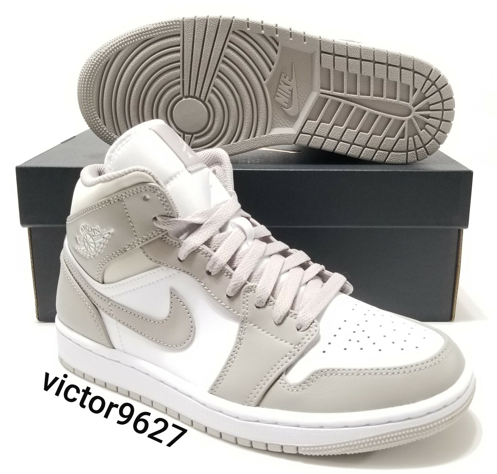 Nike Air Jordan 1 Mid Linen College Grey Light Bone White Mens Size 7 Womens 8 5 195243826392 Ebay